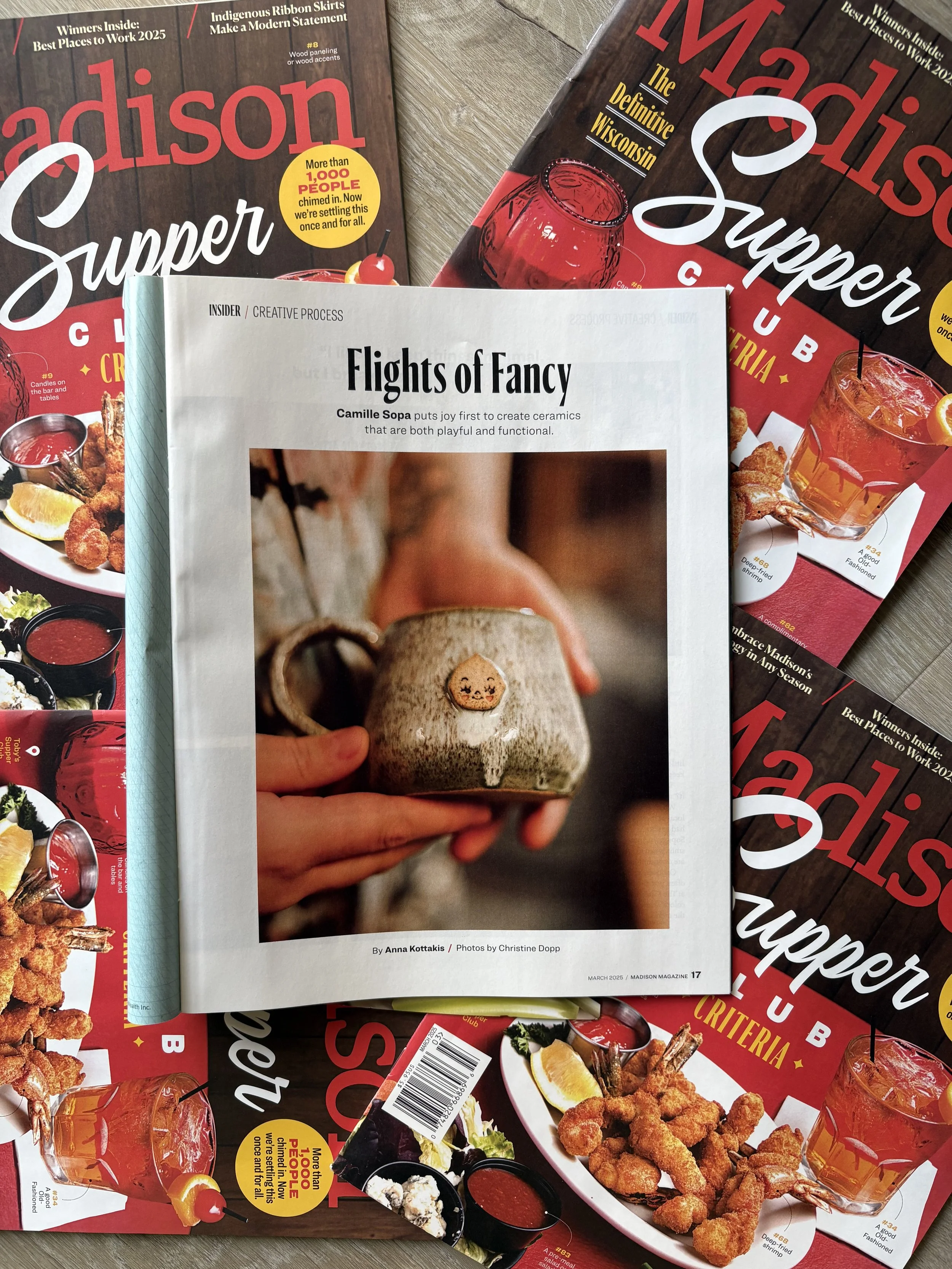 Cami’s ceramics are full of whimsy. Inspired by a balance of cosmic delights and earthy connections, each piece is crafted with careful intention for the person who will use it. She approaches every vessel with wide-eyed wonder, attaching hand-sculpted details—tiny moons, sprigs, stars, and textures —to create tactile, joyful objects that feel both magical and familiar. Functional, thoughtful, and quietly playful, her work invites daily rituals to become moments of delight.